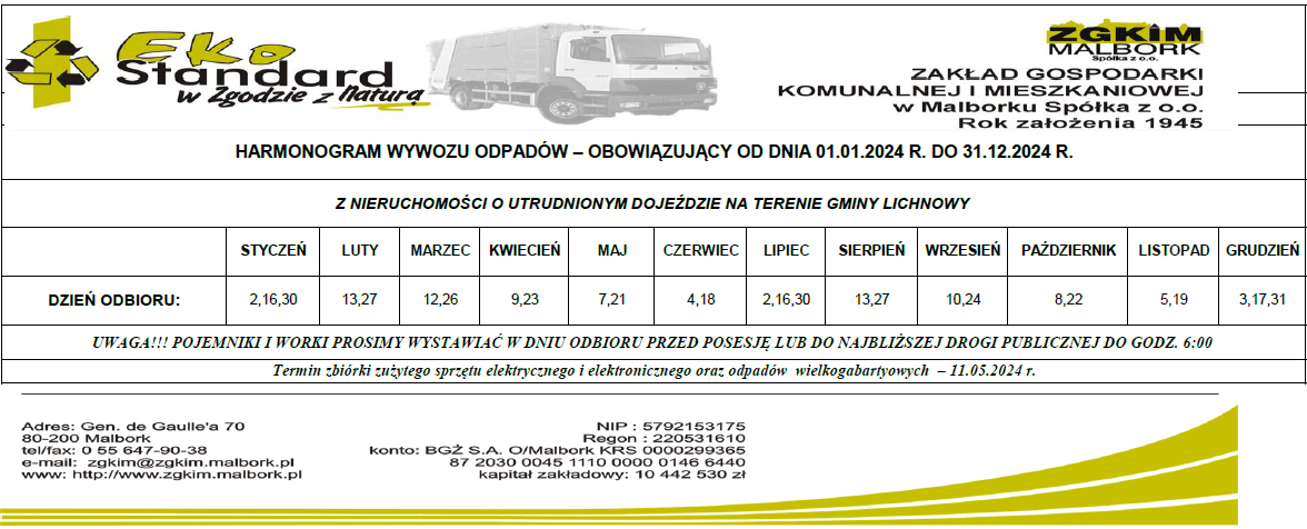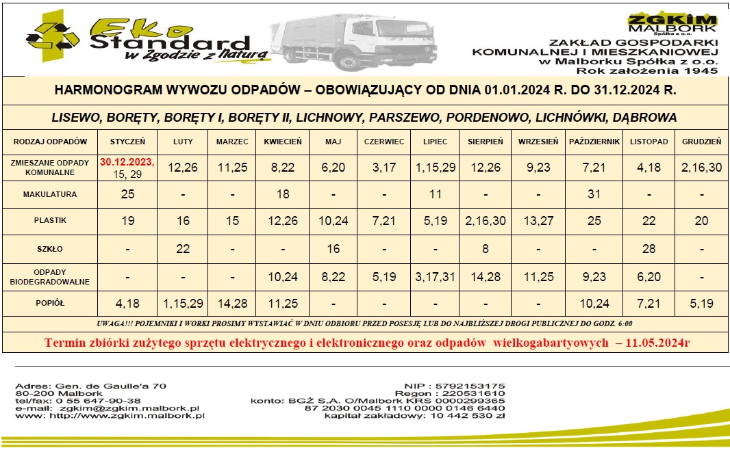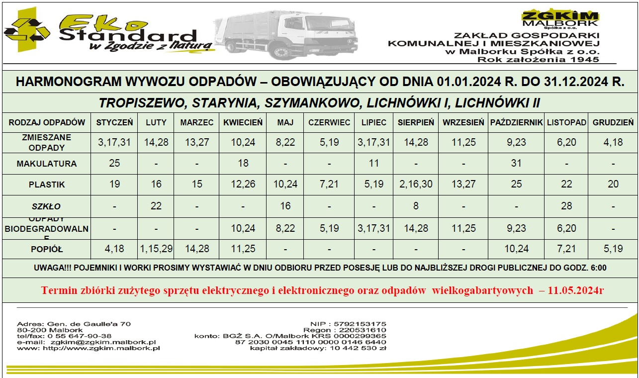 Harmonogram wywozu odpadów